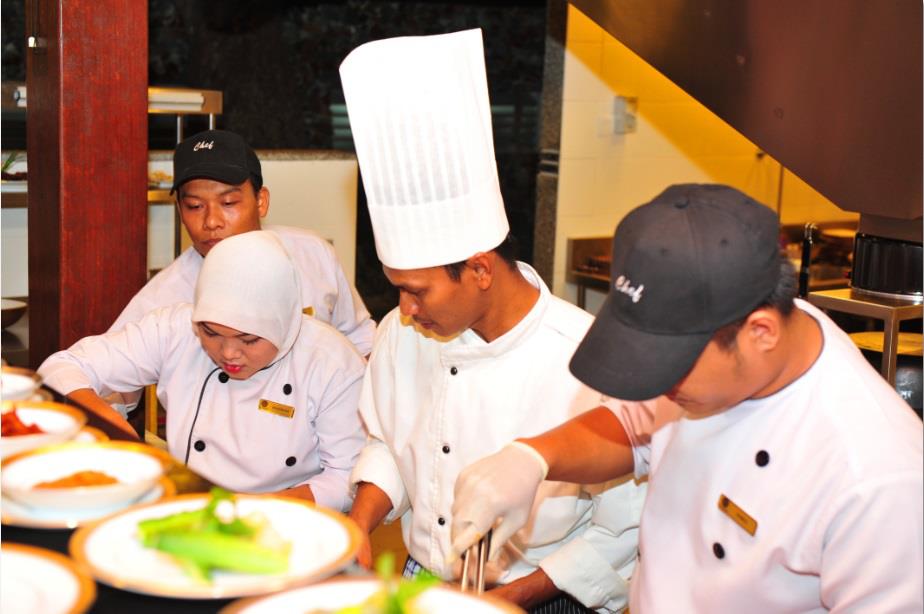 Standing from right, Shamsol Mustapa (Resort Manager), Chef Roslan Darus and 7th from right, SCRL Chairman Dato Dr Zainal Abidin Ali with the worldwide Marketing Managers. |