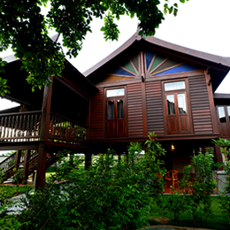 This unique villa has sweeping views of swimming pool and gardens, and the only one facing away from the other villas into the sunset. Guests enter direct into the open plan living room and bedroom with separate bathroom featuring freestanding bath tub, outdoor rain shower, separate WC and other modern amenities. There is also a separate butler access in the kitchenette area. Perfect for couples.